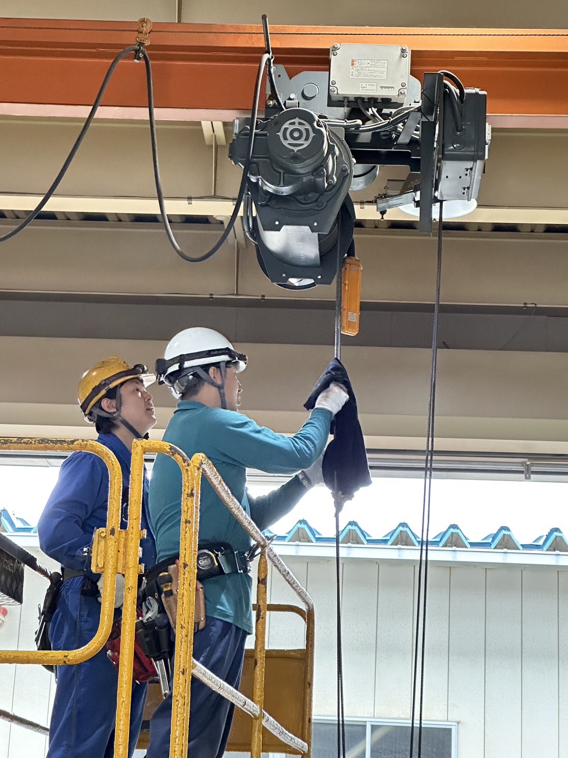 使用しているクレーンの法定点検および自主点検を定期的に行っています。