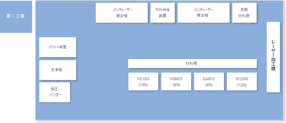 ブランク加工係では、まずお客様の図面を元にプログラムで平面展開図を作成します。この展開図に基づいて素材を切断したり穴をあけるのが「ブランク加工」です。当社ではブランク工程において、ターレットパンチプレス機、レーザー加工機、レーザーパンチ複合機の3台を使い分けます。金型で挟んで型抜きするターレットパンチプレス機では、鉄材や数の多い製品を加工します。レーザー光で切断するレーザー加工機は、主に4ミリ以上ある厚板やステンレスに用いられます。どちらの加工能力も兼ね備えたのがレーザパンチ複合機です。ここが最初の工程なので、お客様や会社に迷惑をかけることがないように確実に作って次の工程に回すことを意識しています。また、ブランク加工は若い人が入ってくることが多い職場です。基本的なことをしっかり身につけ、製品づくりに役立ててもらいたいと思いながら接しています。