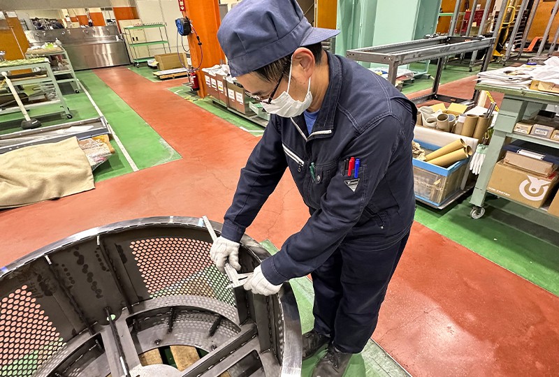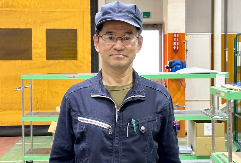 納品直前の製品を、お客様の図面に基づいて検査しています。材料・板厚・寸法・穴の位置・ネジの切られている位置など、チェック項目は多岐にわたります。切りっぱなしの金属の角でケガをしないようにヤスリをかけることもあります。メッキや塗装など、協力会社で仕上げてもらった製品も同様に検査して、最後に梱包して出荷します。得意先によって製品に細かな特徴があるので、担当者を決めて、丁寧さとスピーディーさを両立できる検査を心掛けています。チームワークで検査を分担することもありますので、検査方法の情報共有は欠かさず「誰が見ても同じレベルの仕事ができる」体制を整えています。お客様のオーダー通りの仕上がりでなければ、全く使えない製品になってしまいます。私たちの職場はまさしく「最後の砦」です。